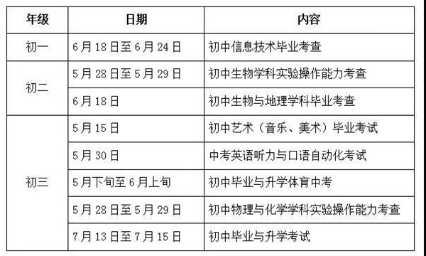 2.考查科目成绩呈现方式及用时。考查科目成绩分为“合格”与“不合格”两类,生物、地理考查用时均为60分钟,信息技术考查用时45分钟,其他考查科目根据学科要求确定测试用时。