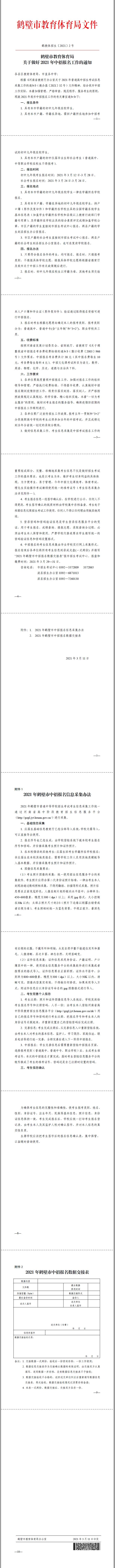 鹤壁市教育体育局关于做好2021 年中招报名工作的通知