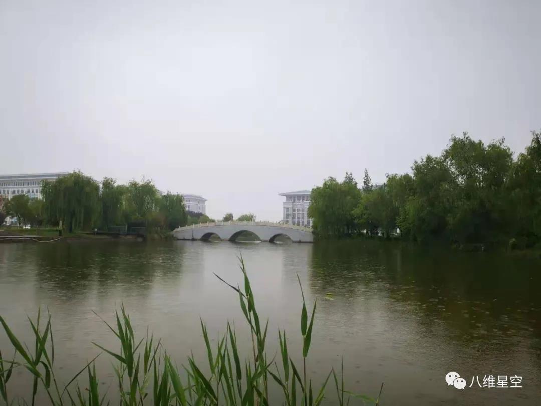 在淅淅沥沥的小雨映照中,校园显得格外清新与美丽,雨点打在树上,落在校园的湖中,走在桥面上,平添了一份诗意~