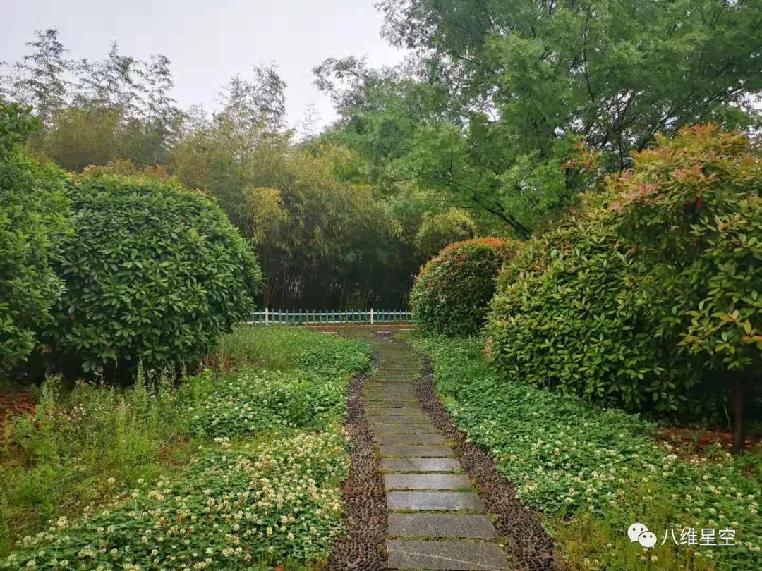 校园小径在雨水冲刷后,映照着周围的绿意,一切都生机盎然,校园里湿漉漉的草地上开满不知名的花。树木也在雨水的滋润中,探出了新芽,校园里夏天的味道更加浓厚了。